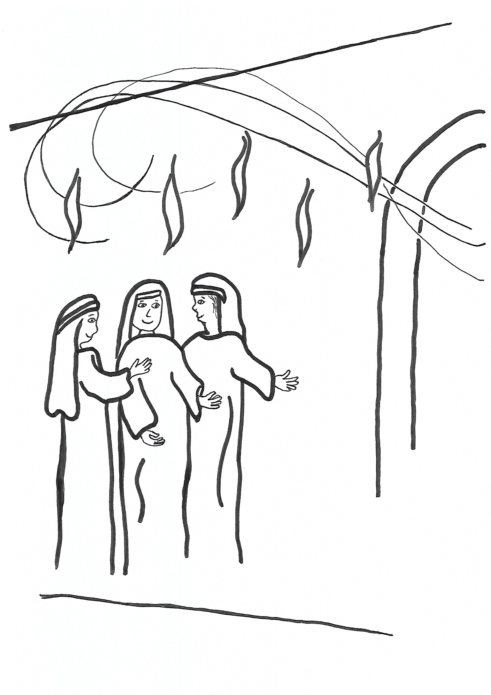 Hier habt ihr noch ein Ausmalbild, wo ihr die Geschichte nocheinmal seht und wenn ihr Lust habt sie bunt malen könnt.